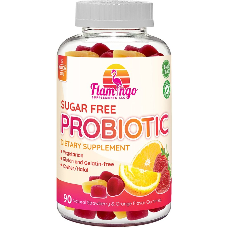 Probiotic Gummies Sugar Free - 5 Billion CFU, Non GMO, Vegetarian (NO Gelatin or Gluten) and Kosher. Probiotics for Women, Kids, and Men. Digestive and Immune Health | 90 Count by Flamingo Supplements Store