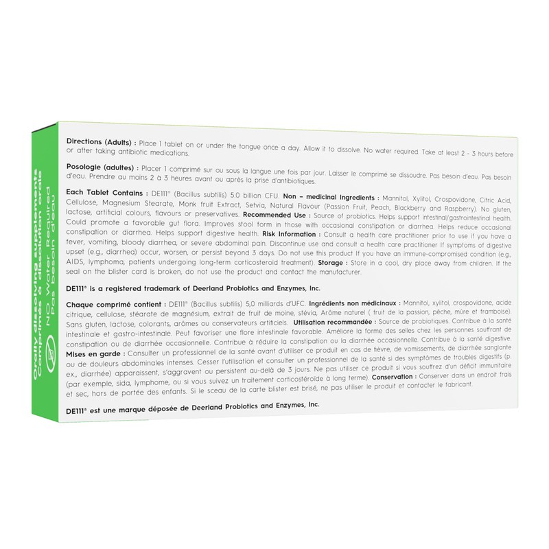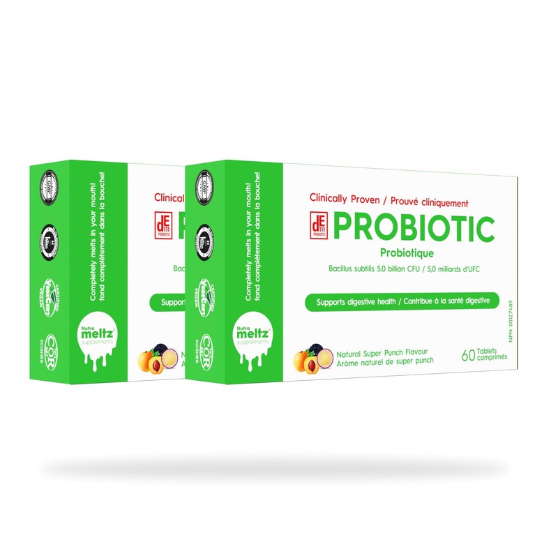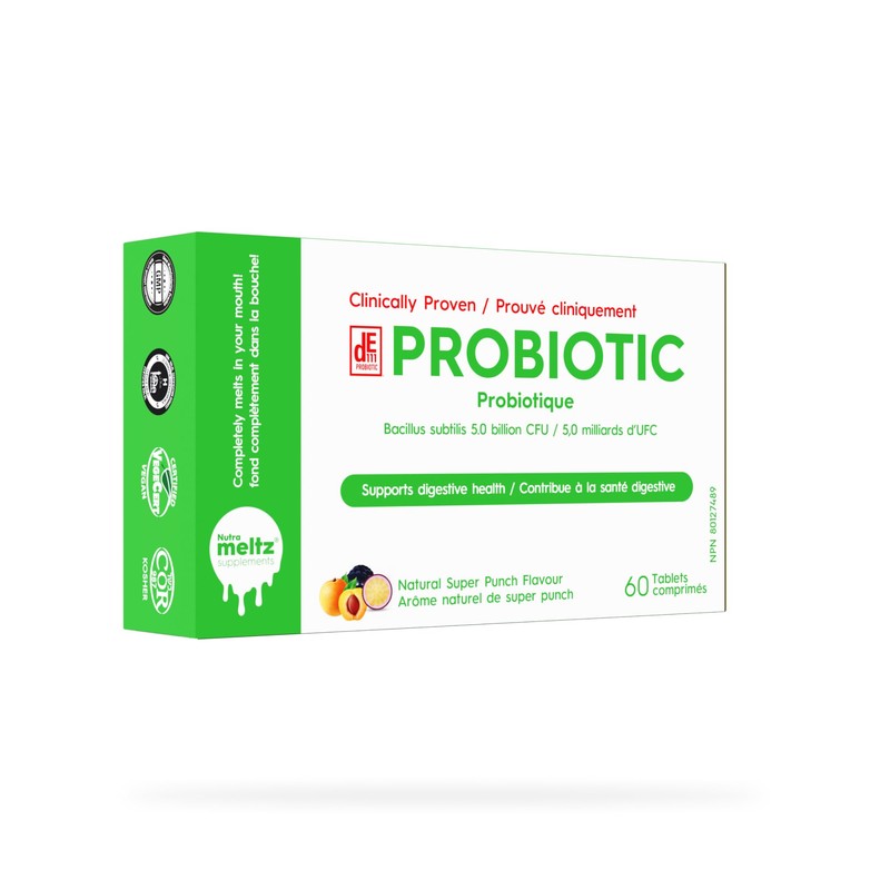 NutraMeltz Probiotic 5 billion CFU is a premium probiotic supplement that supports digestive and immune health. Each tablet contains 5 billion colony-forming units of Bacillus Subtilis, a beneficial bacteria that helps maintain balance in the gut. Bacillus Subtilis promotes the growth of healthy microflora for optimal nutrient absorption and bowel regularity. This probiotic supplement also contains potassium citrate, which aids in electrolyte balance. Taking one tablet daily can help replenish "good" bacteria and support the body's natural defences. NutraMeltz Probiotic 5 billion CFU is conveniently packaged with 60 quick-disolving tablets for daily use.