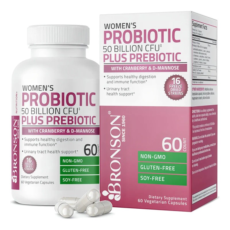 Probiótico Para Mujer 50 Billion Cfu Bronson 60 Cápsulas Sabor Sin Sabor