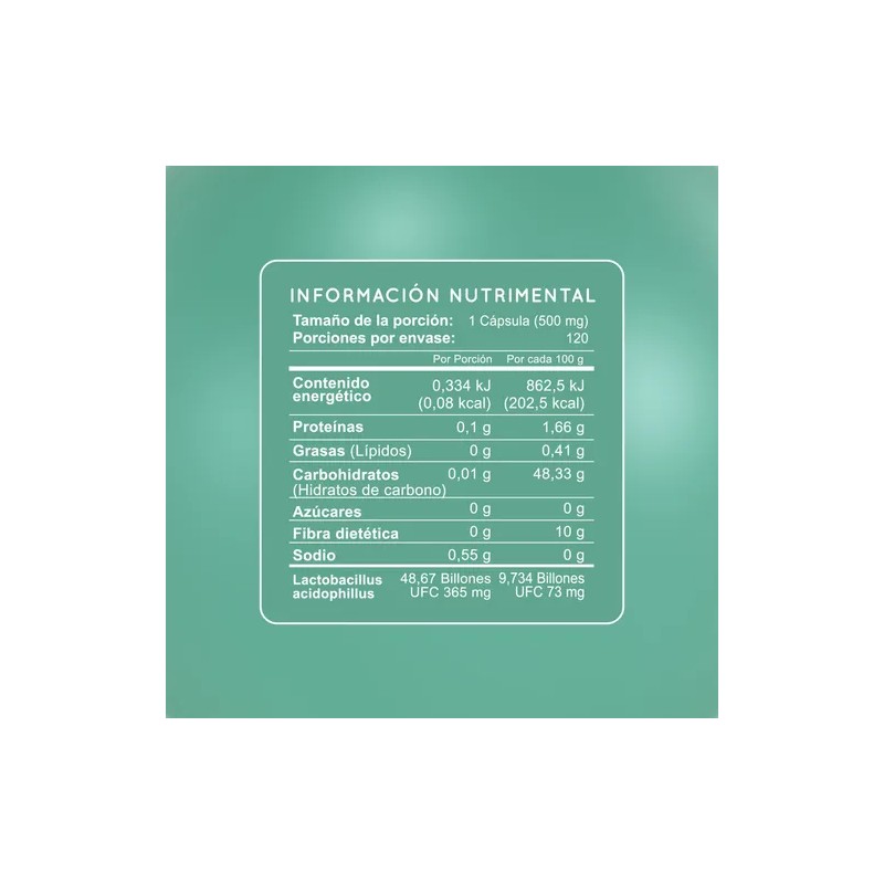 Cada porción contiene 48.67 billones de Lactobacillus acidophilus, una de las cepas más estudiadas y efectivas para: