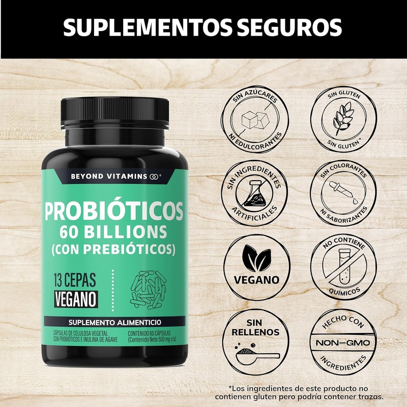 - ❌ ESTE PRODUCTO NO CONTIENE: El suplemento PROBIÓTICOS 60 BILLIONS es elaborado SIN RELLENOS, SIN AZÚCAR, SIN EDULCORANTES, SIN INGREDIENTES ARTIFICIALES, SIN COLORANTES Y SIN SABORIZANTES ARTIFICIALES. Es un producto NON GMO (no modificado genéticamente). Es VEGANO.