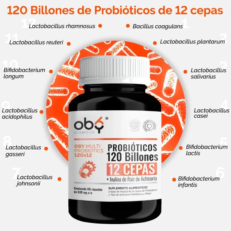Probioticos Avanzados 120 Billones De 12 Cepas + Prebioticos. Oby Multi Probiotics + Inulina Raiz De Achicoria. 60 Capsulas Para 2 Meses. Probioticos Mujer Y Hombre