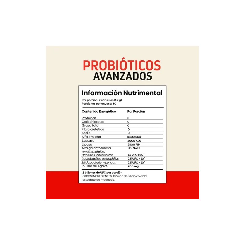 Probióticos Avanzados Laboratorios Wöhl 60 Cápsulas es un suplemento alimenticio de vanguardia diseñado para promover tu bienestar digestivo. Su fórmula avanzada combina enzimas digestivas clave (Alfa amilasa, lactasa, lipasa, alfa galactosidasa) con una potente mezcla de probióticos (Bacillus subtilis, Bacillus Licheniformis, Lactobacillus acidophilus, Bifidobacterium Longum) y el prebiótico Inulina para una acción sinérgica.