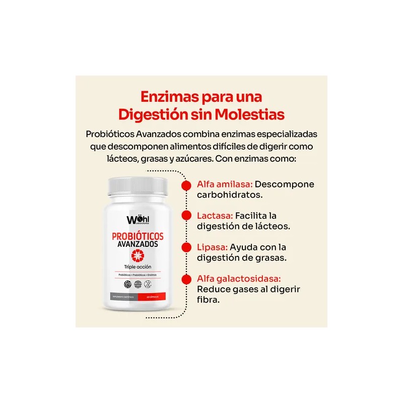 Probioticos Avanzados Laboratorios Wöhl Triple Acción Probioticos+ Enzimas Di...