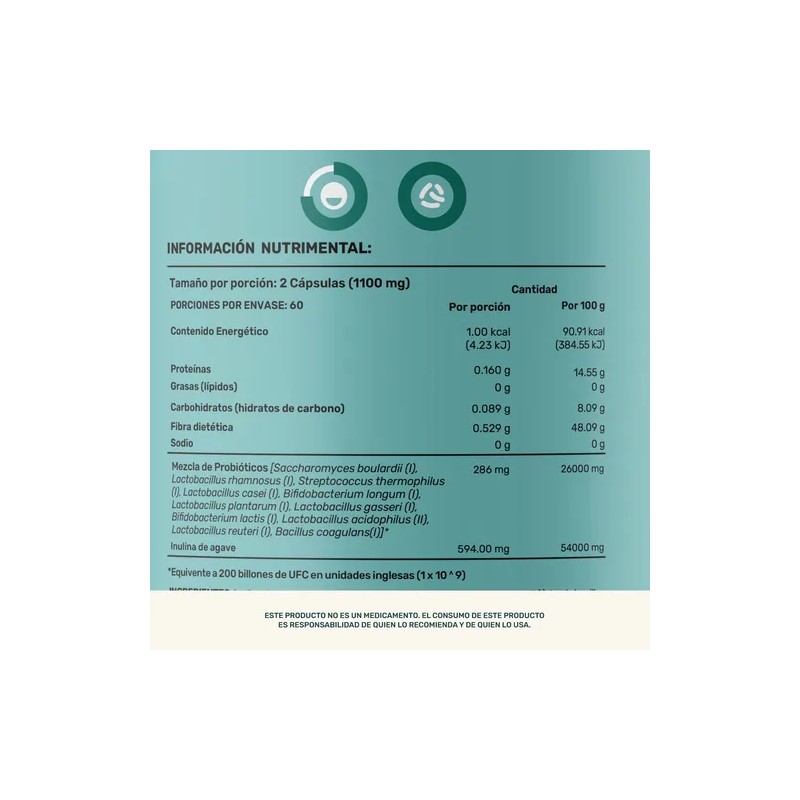 COMPOSICIÓN: Life 360+ 200 BILLONES PROBIOTICS es un suplemento alimenticio que contiene Inulina de agave (prebiótico) y una Mezcla de Probióticos como ingredientes principales dentro de la formulación del producto.