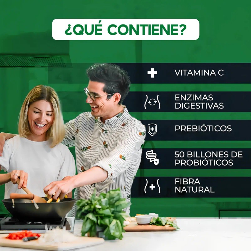 This unflavored, 120-capsule supplement combines 50 billion probiotics, prebiotics, and digestive enzymes (Bromelain, Papain), along with Vitamin C and Zinc, for comprehensive digestive and gut health support. It helps balance microbiota, enhances nutrient absorption, and strengthens the immune system.