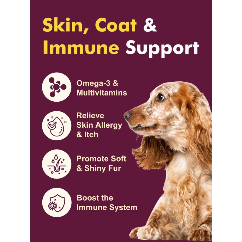 - GENTLE DOG ALLERGY RELIEF: The dog probiotics for yeast itchy skin and itchy ears also contain high-quality krill oil omega 3 for dogs, help anti itch for dogs, paw licking and itch relief for dogs. It helps nourish their coat and impove skin condition