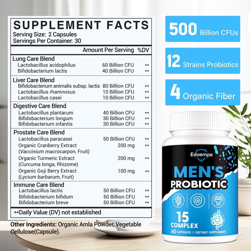 • Combination of Organic Fiber Ingredients — Organic fiber is beneficial digestion, uniquely combining probiotics and organic fibers with extracts, these mens probiotics's unique integration good for urinary and prostate*, energy and offers special care for men's health*. Experience the differences of our probiotics for men, which can help you maintain long-term wellness*.