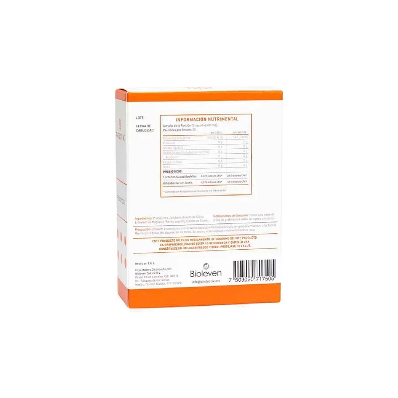 Probiotix Probióticos 50 Billones es un suplemento nutricional diseñado para cuidar tu salud digestiva con una potente combinación de 2 cepas: Bifidobacterium lactis y Lactobacillus acidophilus. Cada cápsula contiene 50 billones de probióticos, ideales para equilibrar tu flora intestinal y apoyar tu bienestar general. Su fórmula no necesita refrigeración y es libre de gluten y lactosa, lo que la hace apta para personas con restricciones alimentarias. Solo necesitas una cápsula al día para fortalecer tu sistema digestivo de forma práctica y efectiva. Probiotix es una solución confiable para quienes buscan mantener su salud intestinal al máximo nivel, sin complicaciones.