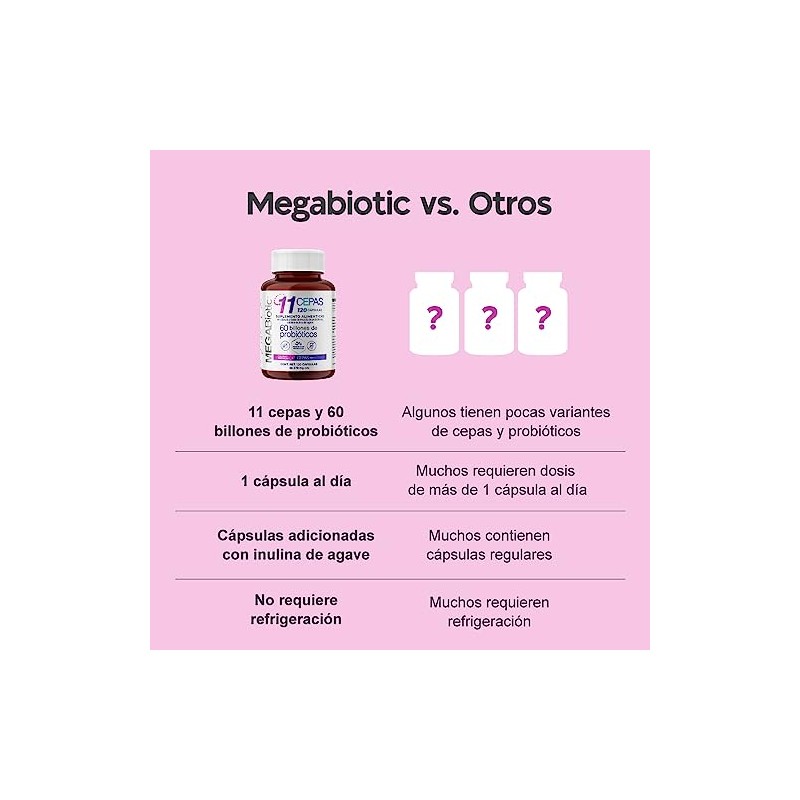 MegaBiotic - Probióticos 60 Billones y 11 Cepas e Inulina de Agave | Suplemento Alimenticio con Probióticos y Prebióticos a Base de Sábila, B. Lactis y L. Rhamnosus | Cont. 120 caps., MegaBiotic. ✅ Diseño innovador que supera las expectativas. Tecnología avanzada y rendimiento superior. 📦 Entrega rápida y segura. Ideal para quienes buscan lo mejor en calidad y estilo. Producto auténtico con satisfacción total asegurada. ¡No te quedes sin el tuyo y aprovecha esta oportunidad única!