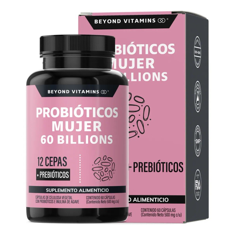 Probiticos Mujer 60 Billion Prebiticos (prebiotic) Inulina de Agave 12 Cepas Beyond Vitamins - Probiticos femeninos - Probiticos Vaginales Flora -