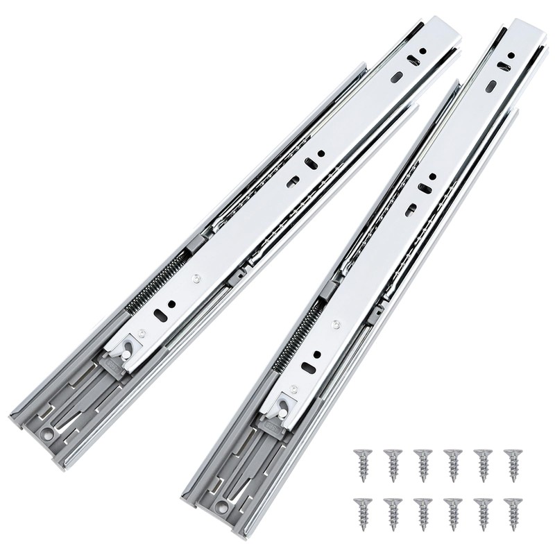 - 【Package includes】1 pair of 12 inch drawer slides, mounting screws and detailed instruction included for easy installation. Each pair packed individually to make sure slides reach in good condition. Drawer slides are side mounted for frameless drawers. For drawers with frame, please purchase our matching rearing mounting bracksets