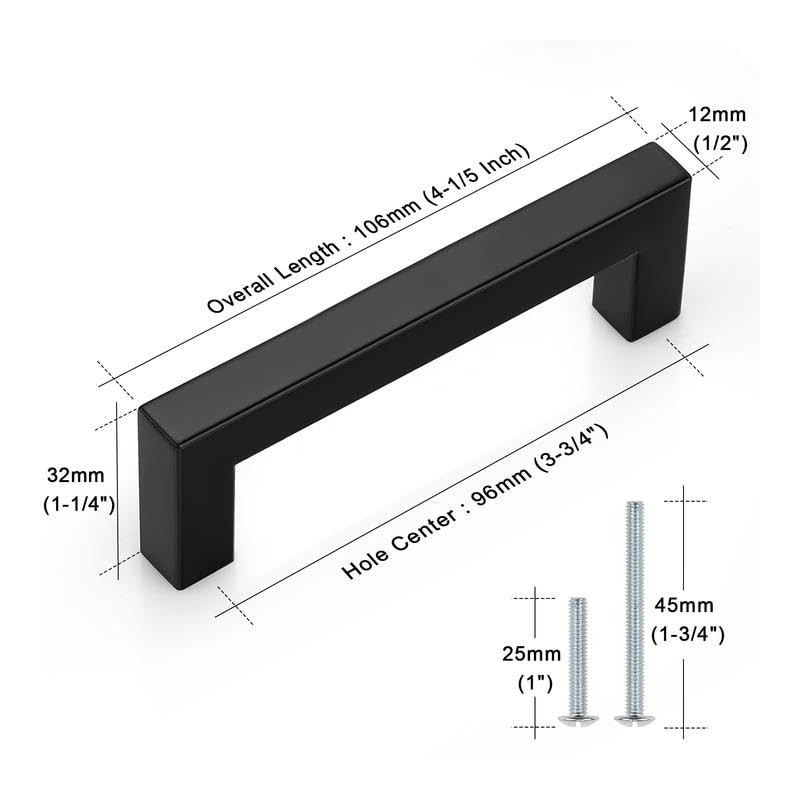 - 【Widely Compatible】The square pull is suitable for modern or traditional style of kitchen cabinet,bathroom drawer,bedroom cupboard,dresser,wardrobe,closet and door.Black finish easily enhance your decoration.