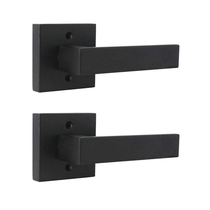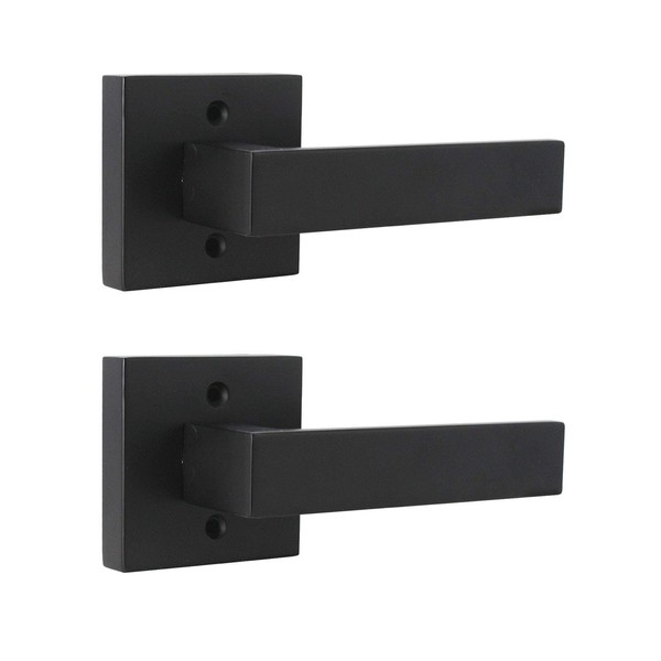 Probrico 2PACK Interior Door Handles, Heavy Duty Single Dummy Door Levers, Without Lock, Door Knobs with Square Rosette, Keyless Door Knobs Black