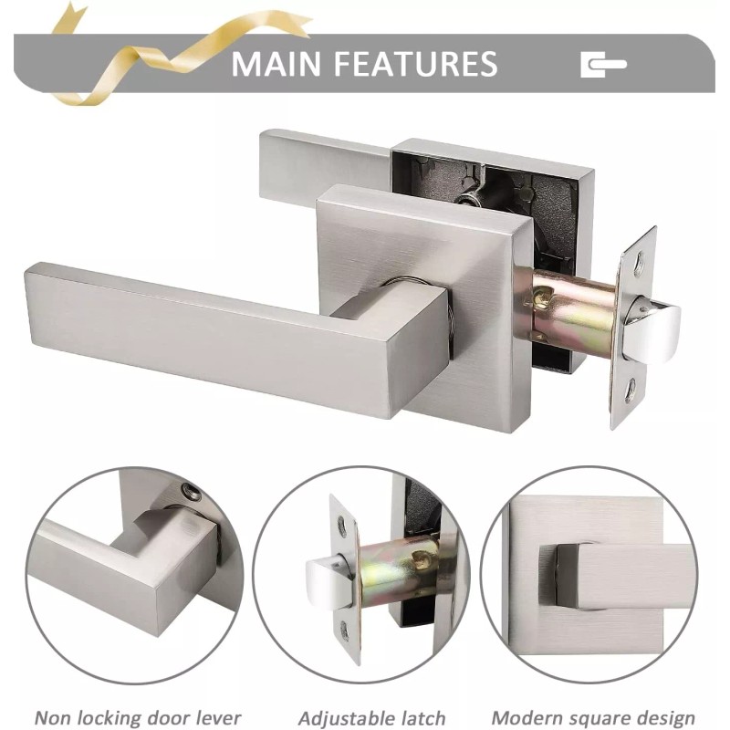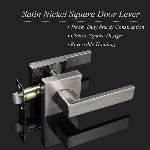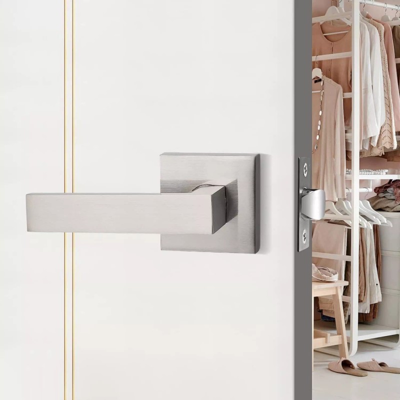 Probrico 2PK Probrico Square Passage Door Lock Lever Door Handle Hall/Closet Satin Nickel