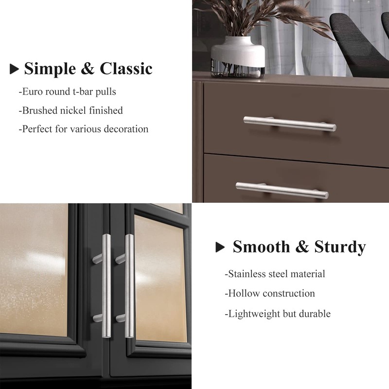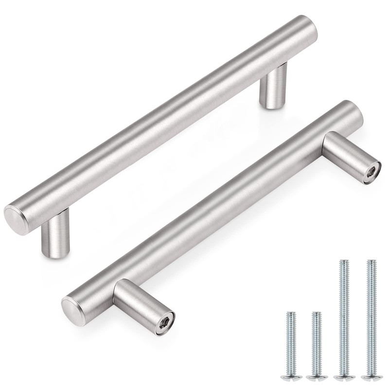 Probrico 30 Pack|4 Inch Satin Nickel Cabinet Handles, Euro Style Drawer Pulls, Stainless Steel Modern Round T Bar Kitchen Cabinet Pulls, Cabinet Hardware for Bathroom Bedroom
