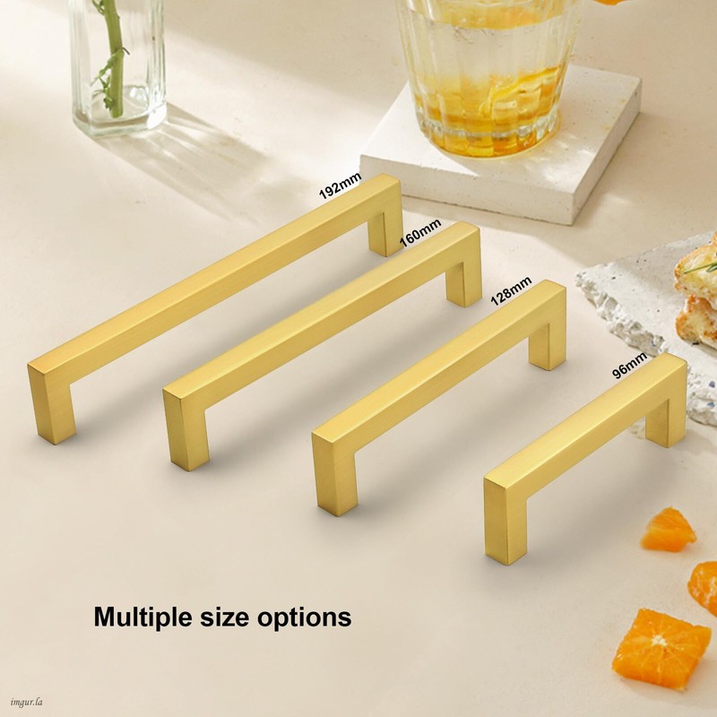 Probrico 96mm Cabinet Pulls Gold Cabinet Handles Stainless Steel Drawer Pulls Cupboard Square Bar Handles Wardrobe Knobs 15 Pack