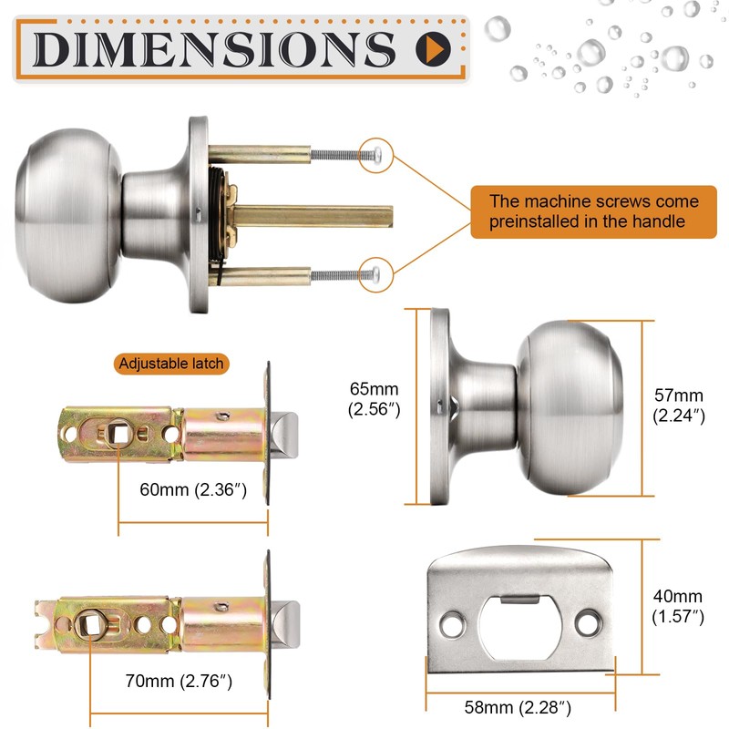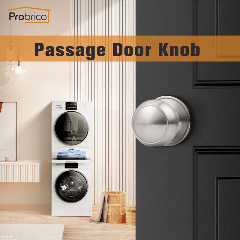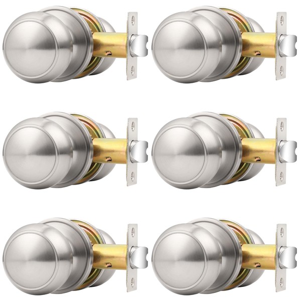 Probrico Brushed Nickel Door Knob, Passage Door Knobs for Closet and Hallway, Keyless Interior Door Knob, 6 Pack