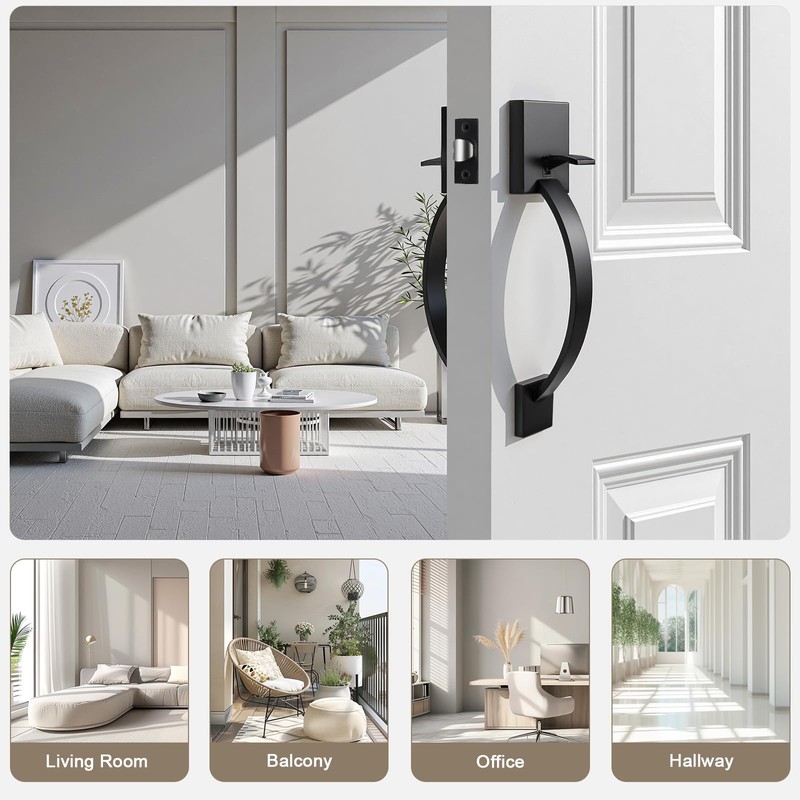 Probrico Double Sided Black Front Door Handle,Exterior/Interior Keyless Squar...