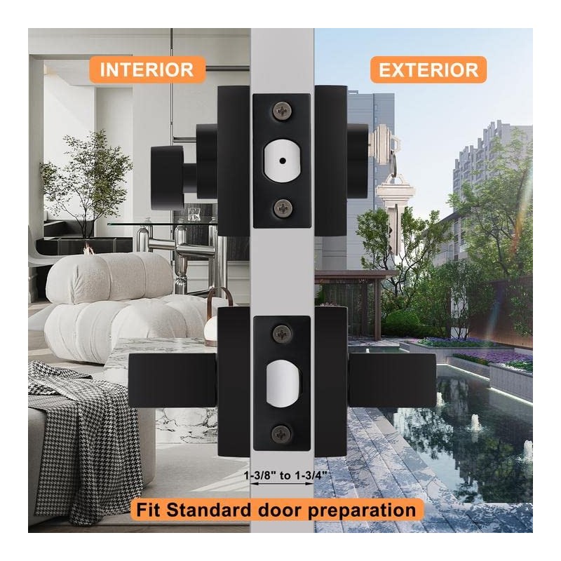 • 【Steel Adjustable Latch】--The door lever set fits doors with a thickness of 1-3/8 inch to 1-3/4 inch (35mm to 45mm) and is equipped with an adjustable backset of 2-3/8 inch or 2-3/4 inch (60mm or 70mm)
