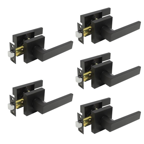Probrico Matte Black Passage Door Levers Square Hall Closet Handles, Heavy Duty Interior Non-Locking Lever Sets, Reversible for Right & Left Side, 5 Pack
