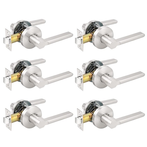 Probrico Modern Stain Nickel Keyless Passage Door Levers Interior Locks for Hall or Closet, Flat Door Handles Non-Locking Lever Set, Reversible for Right & Left Side, 6 Pack