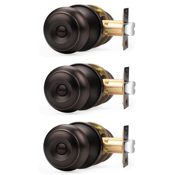Probrico Oil Rubbed Bronze Door Knobs, Interior Door Knobs with Round Ball Knob, Bronze Privacy Door Knob for Bedroom Bathroom, 3 Pack