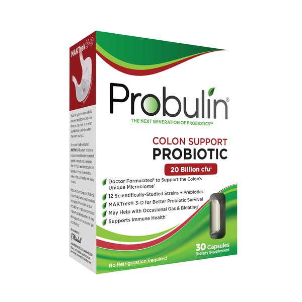 - Colon Support: Probulin Colon Support is a targeted once daily probiotic plus prebiotic that is highly concentrated in beneficial bifidobacteria. Probulin's scientifically formulated MAKTrek 3-D Probiotic Delivery System protects, feeds and hydrates to ensure better delivery of beneficial bacteria to the gut