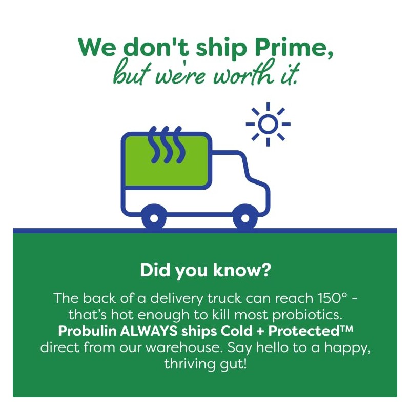 - Always Ships Cold + Protected: Probiotics must be protected inside and outside of the body. Probulin always ships using environmentally friendly insulated boxes on ice