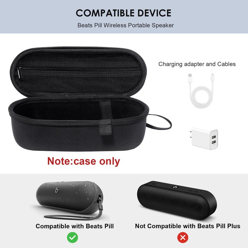 • Specifically crafted to fit your Beats Pill wireless speaker (2024 release), with a top lid that provides ample space for chargers and accessories (NOTE: NOT compatible with Beats Pill Plus!)