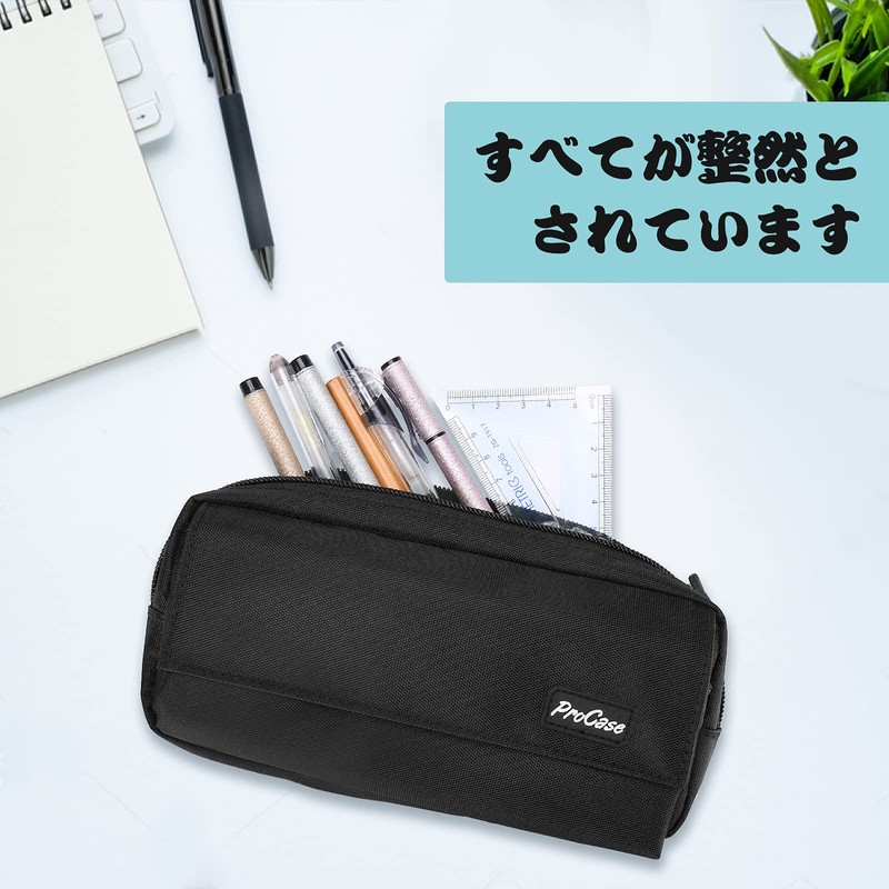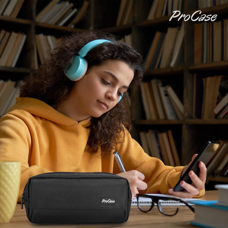 ProCase Large Capacity Simple Pencil Case with Zipper for Students and Workers Multi-functional - Black