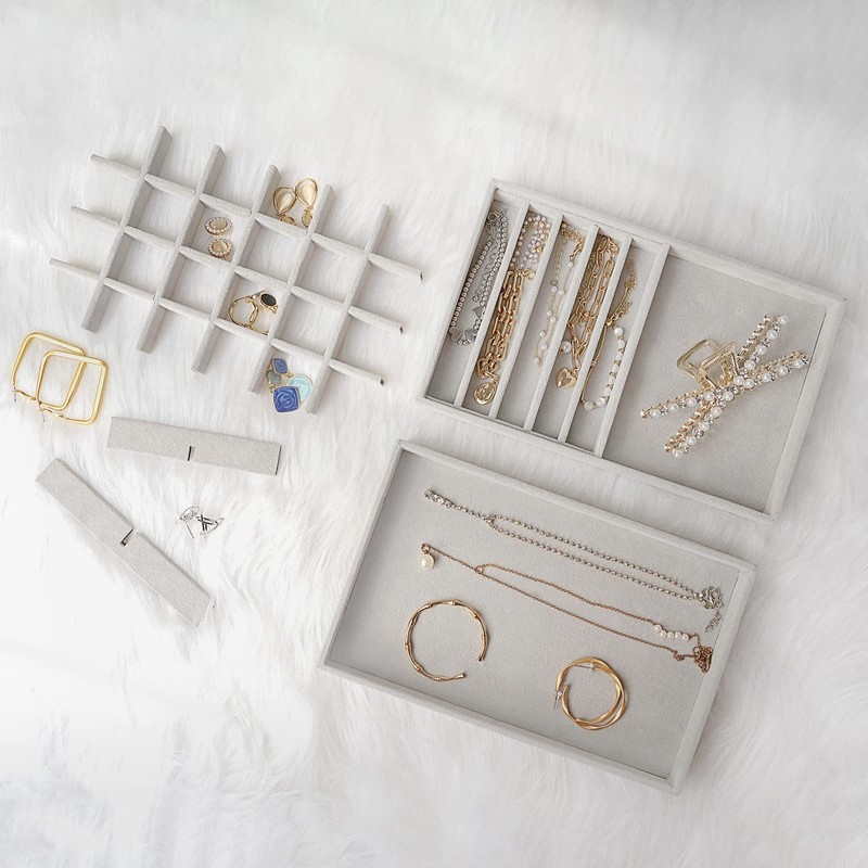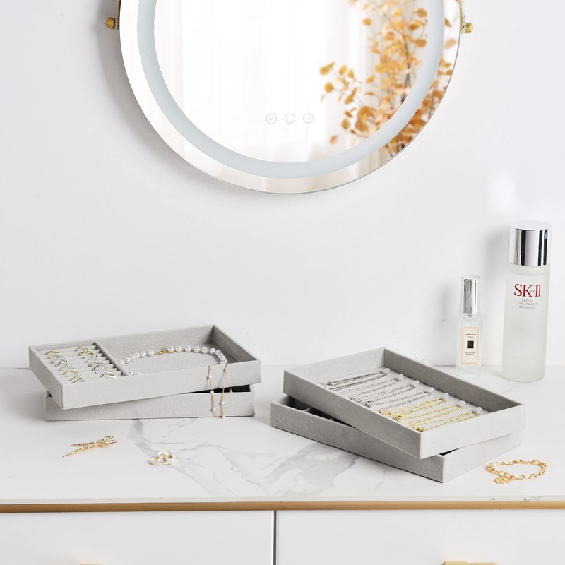 - ✅ Each tray measures: 9.4(L) x 5.9(W) x 1.1(H) inches; These jewelry tray organizers with right sizes will sit perfectly in your dresser drawer, protecting your jewelry from scratches and other damage