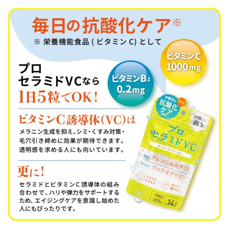 Proceramide VC, 70 Capsules, Approx. 14 Day Supply, Vitamin C, Glucosylceramide, Proteoglycan, Nutritional Functional Food