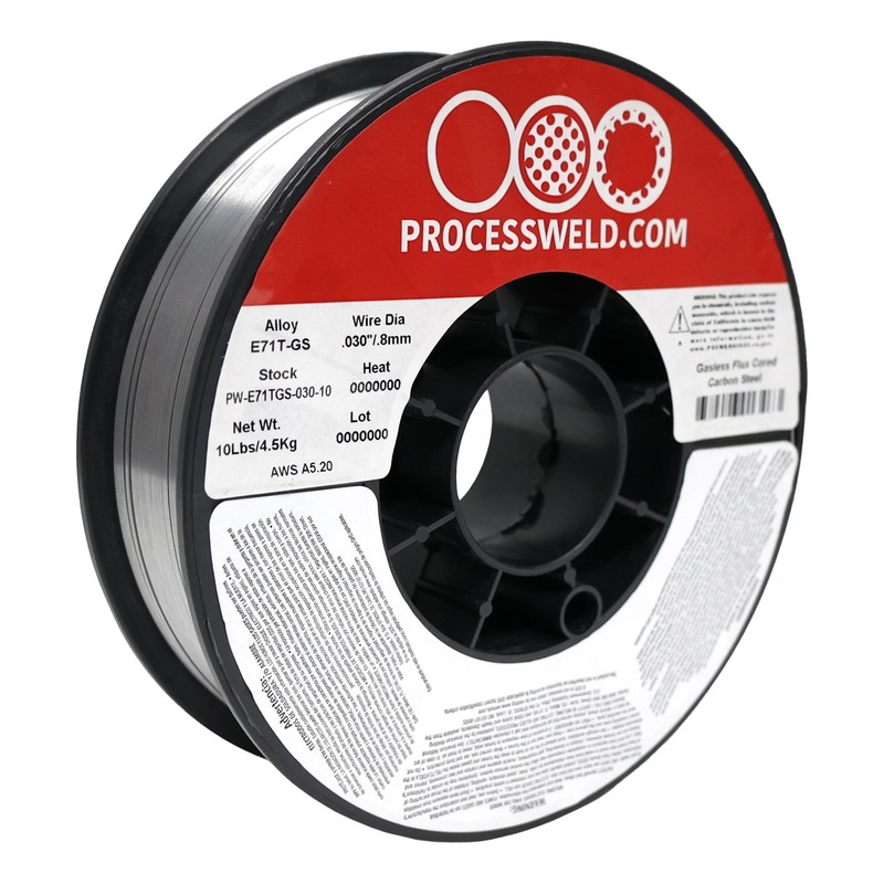 Process E71TGS X .030” X 10 LB MIG/FCAW Gasless Flux Core Carbon Steel Welding Wire, All Position, Easy Slag Removal, Formulated to Provide Porosity-Free, X-Ray Quality Welds