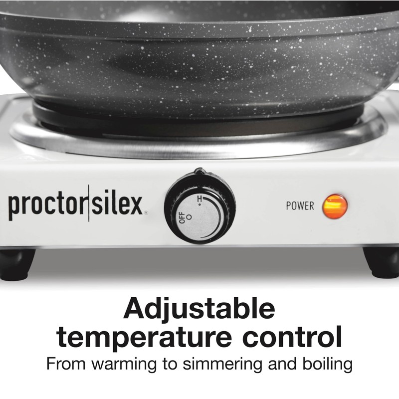 Proctor Silex Cast Iron Portable Electric Stove, Single Burner Cooktop, Compact, Adjustable Temperature Hot Plate, 1000 Watts, White (34107)
