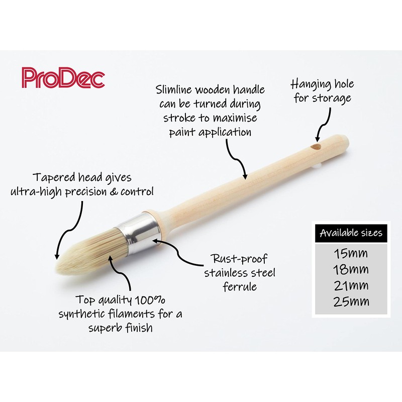 - Slimline wooden handle enables you to turn the brush and maximise paint application