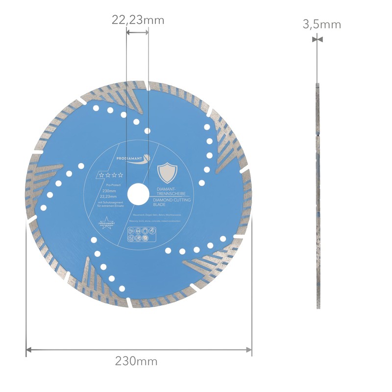 PRODIAMANT Pro Protect Diamond Cutting Disc 230 mm x 22.2 mm with Protective Segments for Masonry Concrete Bricks
