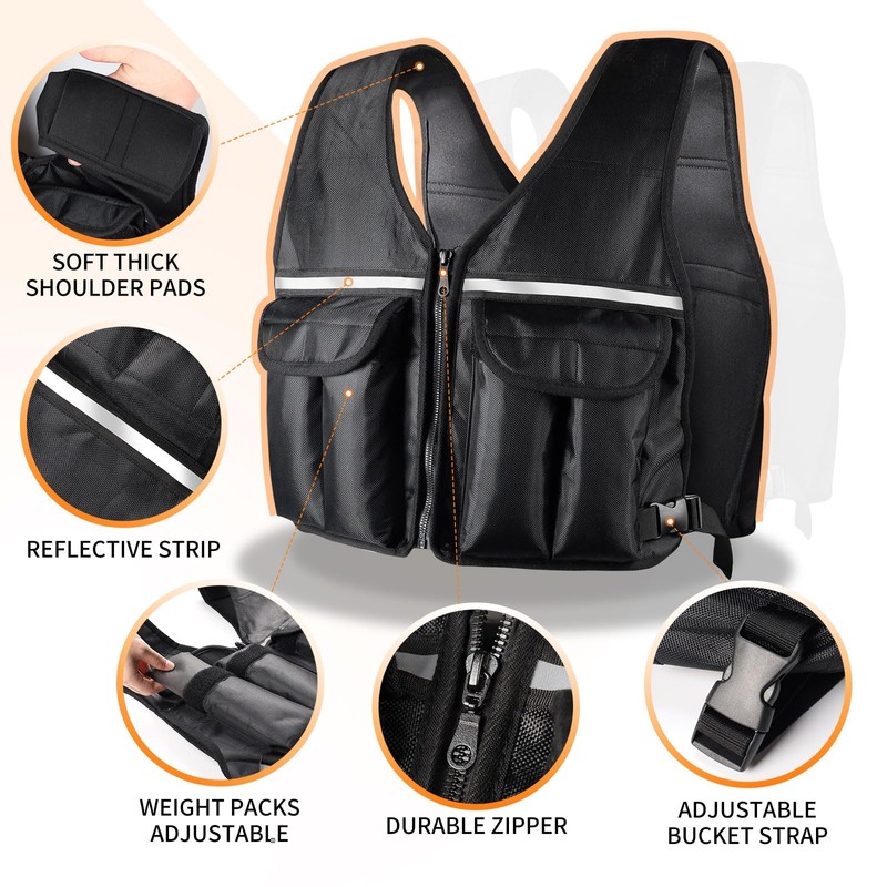 - Personalized Training Experience: Our weighted vest features an innovative adjustable weight design, allowing both fitness beginners and enthusiasts to gradually increase or decrease the weight based on their individual fitness level and training goals. With just one weighted vest, family members can each find their perfect weight setting