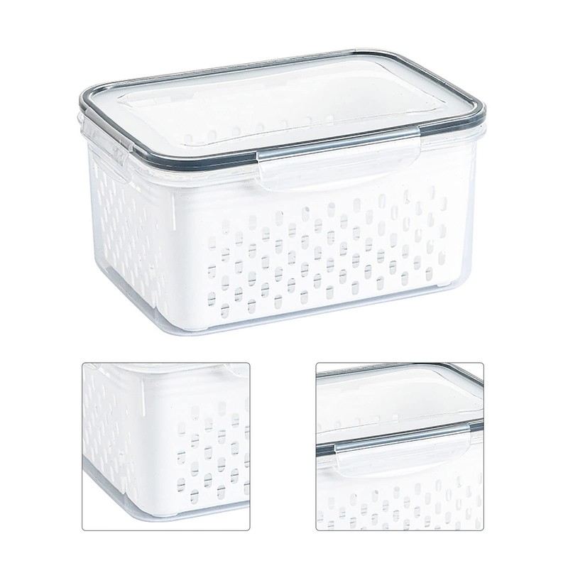 • 【QUICK DRAIN】Drain storage basket box features a draining design for fast draining, airtight retention, and stain and odor Keeps fruits and vegetables like lettuce and blueberries fresher for longer.