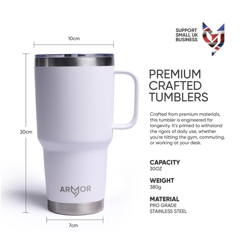 - Hydration Support: With its ample 30oz capacity, the Armor tumbler caters to extended periods without needing a refill. Designed to keep both hot and cold drinks at their optimal temperature, this tumbler is perfect for all your daily hydration needs.