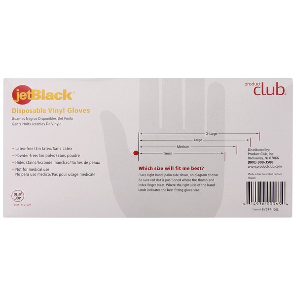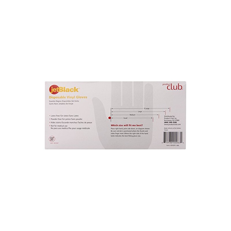 Product Club JetBlack Vinyl Gloves, Black, Large, 90 Count