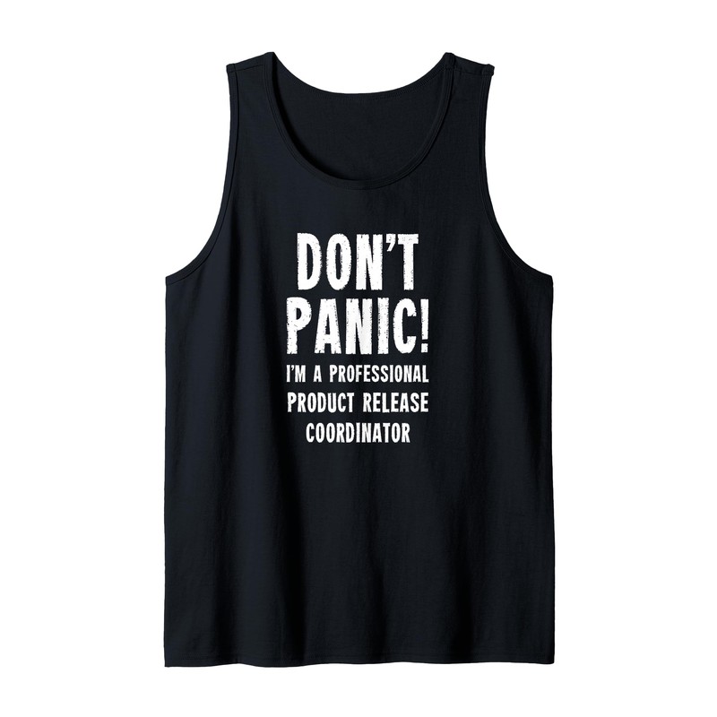 - A quirky design for release pros – "Don't Panic, I'm a Professional Product Release Coordinator!"
