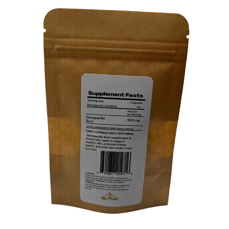 PRODUCTOS MR. FIELD Sarsaparilla Root Capsules 500 mg Quantity 30