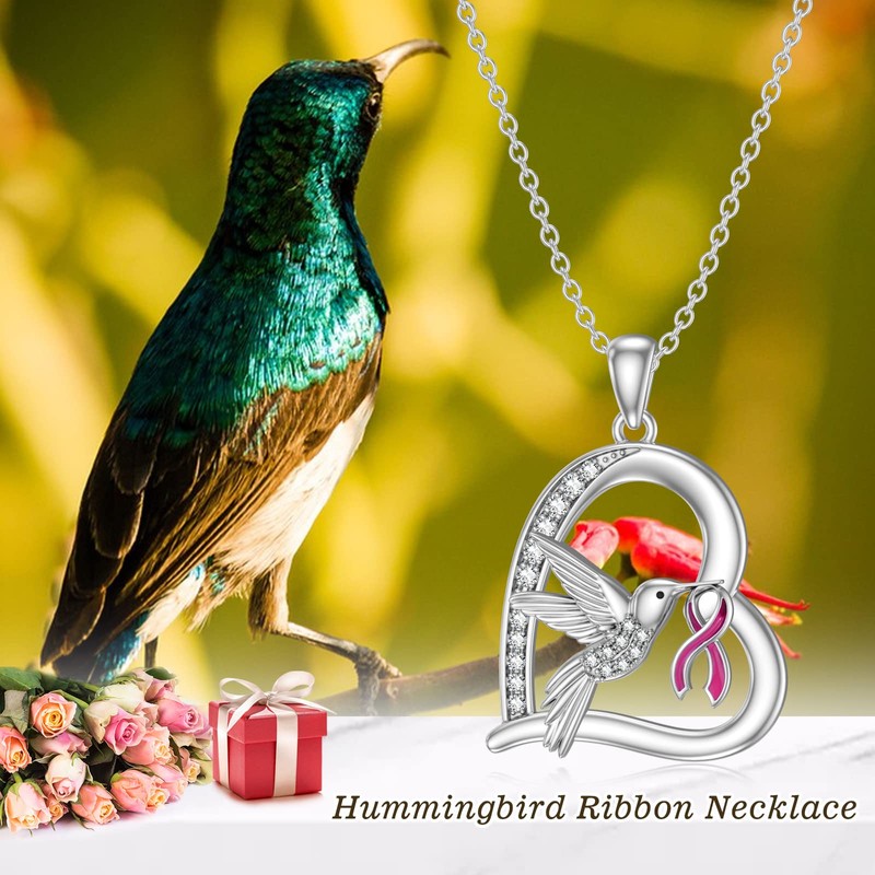 PROESS Kolibri Halskette 925 Sterling Silber Brustkrebs Bewusstsein Anhänger Kette Kolibri Schmuck Brustkrebs Survivor Geschenke für Frauen und Mädchen