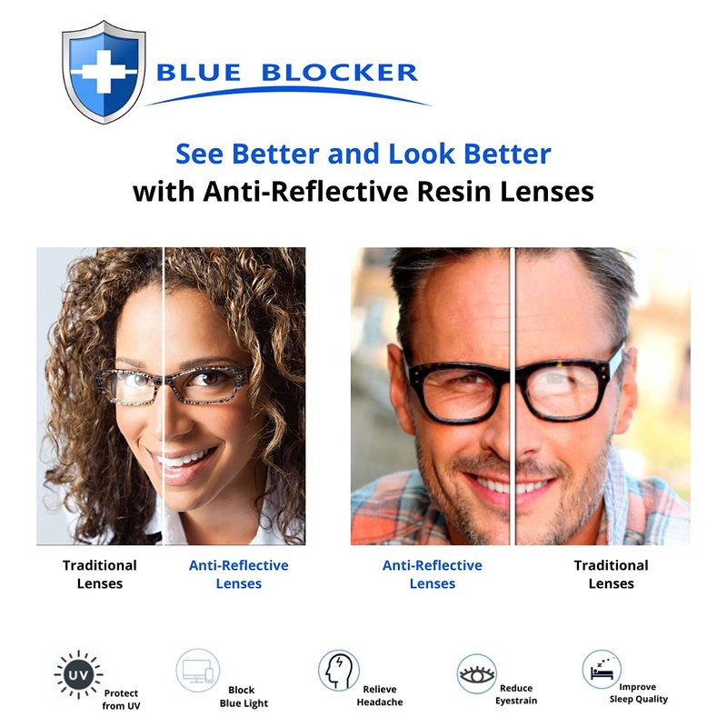- ✔️MAXIMUM EYE PROTECTION: ProEyes blue blocker lenses that are made of CR39 are anti-reflective, scratch-resistant, and embedded with blue light protection material. These lenses offer optimal visual comfort, clarity, and cosmetic appearance. They provide 100% UV protection and help reduce digital eye strain caused by harmful blue light.