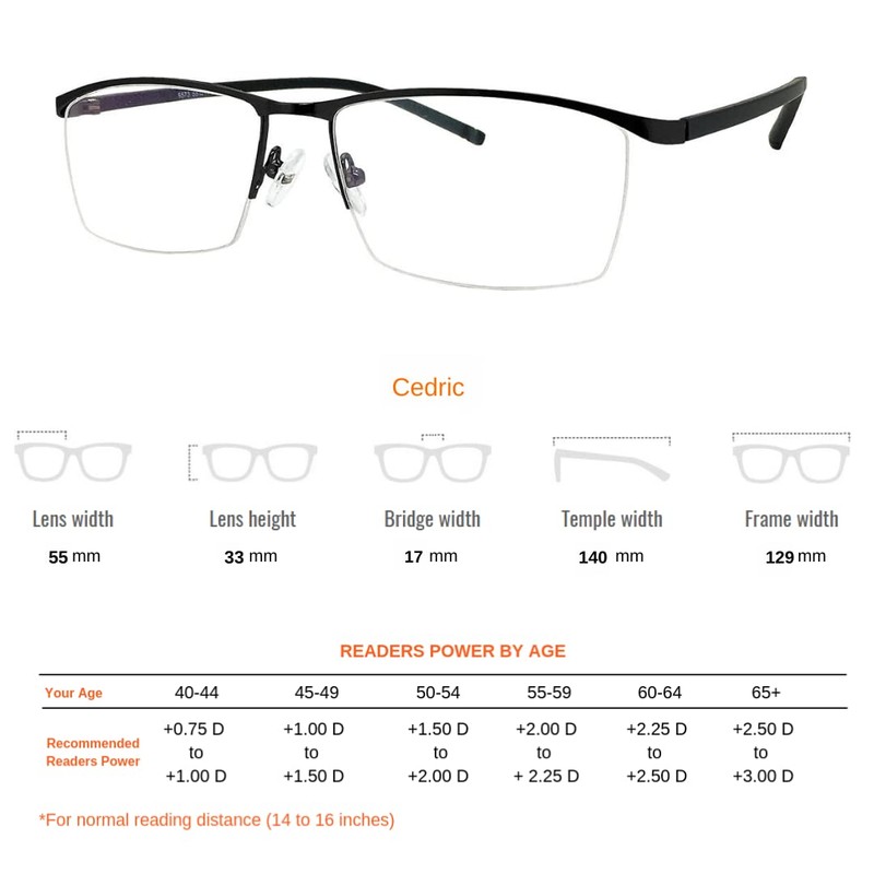 ProEyes Cedric, Big Men Progressive Blue Light Blocking Readers, 0 Strength on Top Lens, Lightweight (Black, 1.75, multiplier_x)