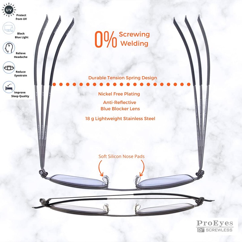 - ✔️ANTI-REFLECTIVE: ProEyes Blue Blocker lenses are made of Resin with 100% UV protection. AR Coating eliminates the reflection from both the front and back surfaces of your eyeglass lenses and optimize vision. It can withstand scratches and smudges and extend the life of your lenses. It has cosmetic benefits that people can see you clearly. It makes a lot of difference than lenses made of acrylic.