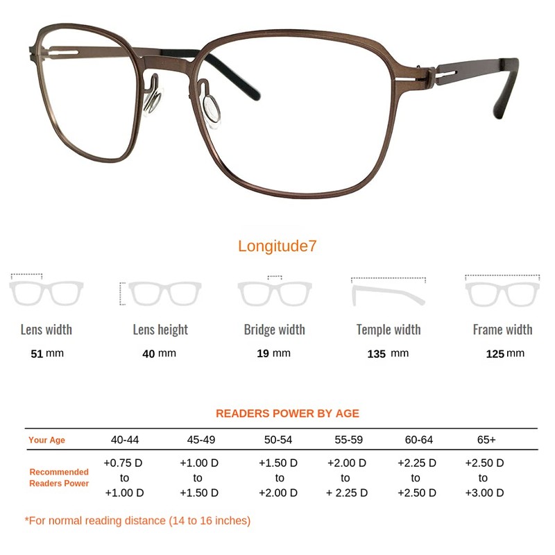 ProEyes Longitude 7, Progressive Blue Light Blocking Screwless Readers, Anti-Reflective, 0 Power on Top Lens (Brown, 1.25)