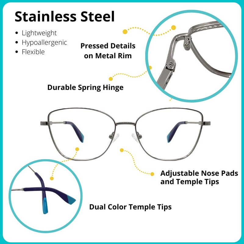 ProEyes Mia, Progressive Blue Light Blocking Readers, 0 Strength on Top Lens, Spring Hinge, Lightweight, Durable (Gun, 1.5, multiplier_x)