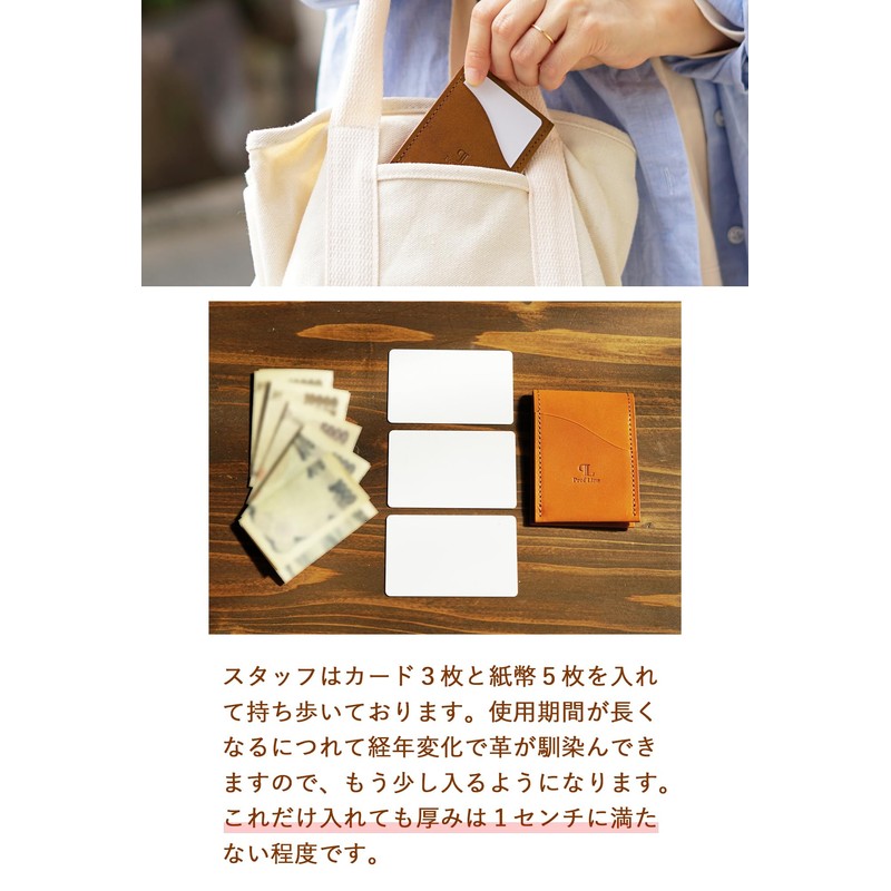 Store your main credit cards, traffic IC cards, and small bills for an ultra-compact wallet.